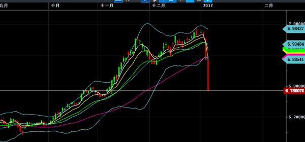 然后就是ADP就业数据,从215跌到153,利空美元。这是2017年第一周的大型数据,人民币昨晚也正是借着这把东风暴涨的。